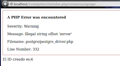Como pueden observar es un error con carácter "Warning" a pesar de que esta haciendo la inserción en la tabla normalmente.